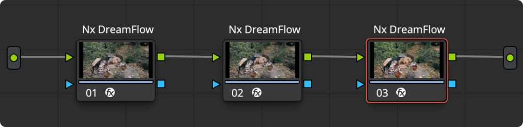 For more pronounced dreamflow effects, Nx DreamFlow can be applied multiple times by stacking nodes in series.