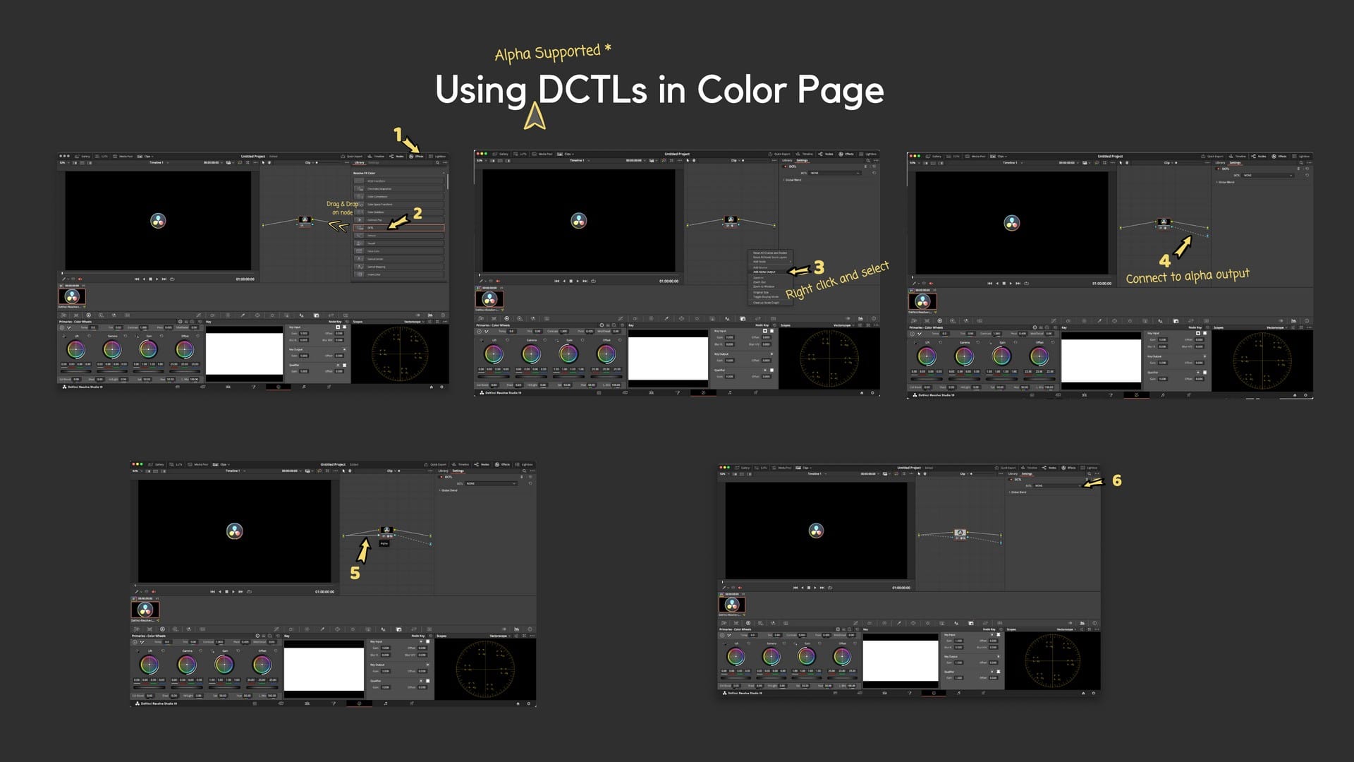 - Apply in Your Projects: Once installed and Resolve is restarted, DCTLs can be accessed from multiple pages in the software.